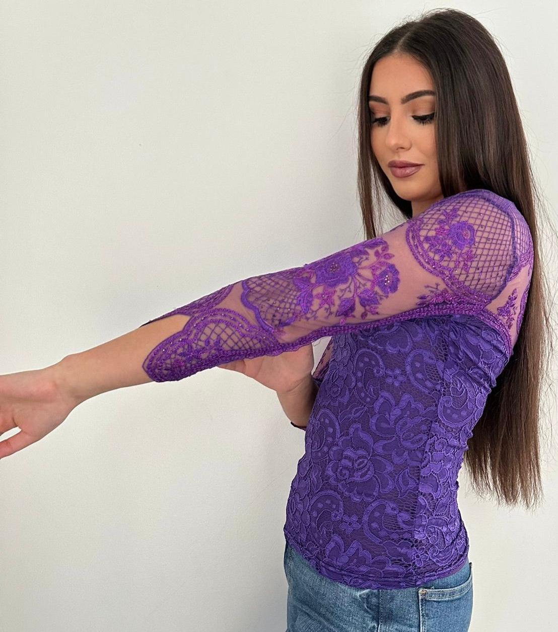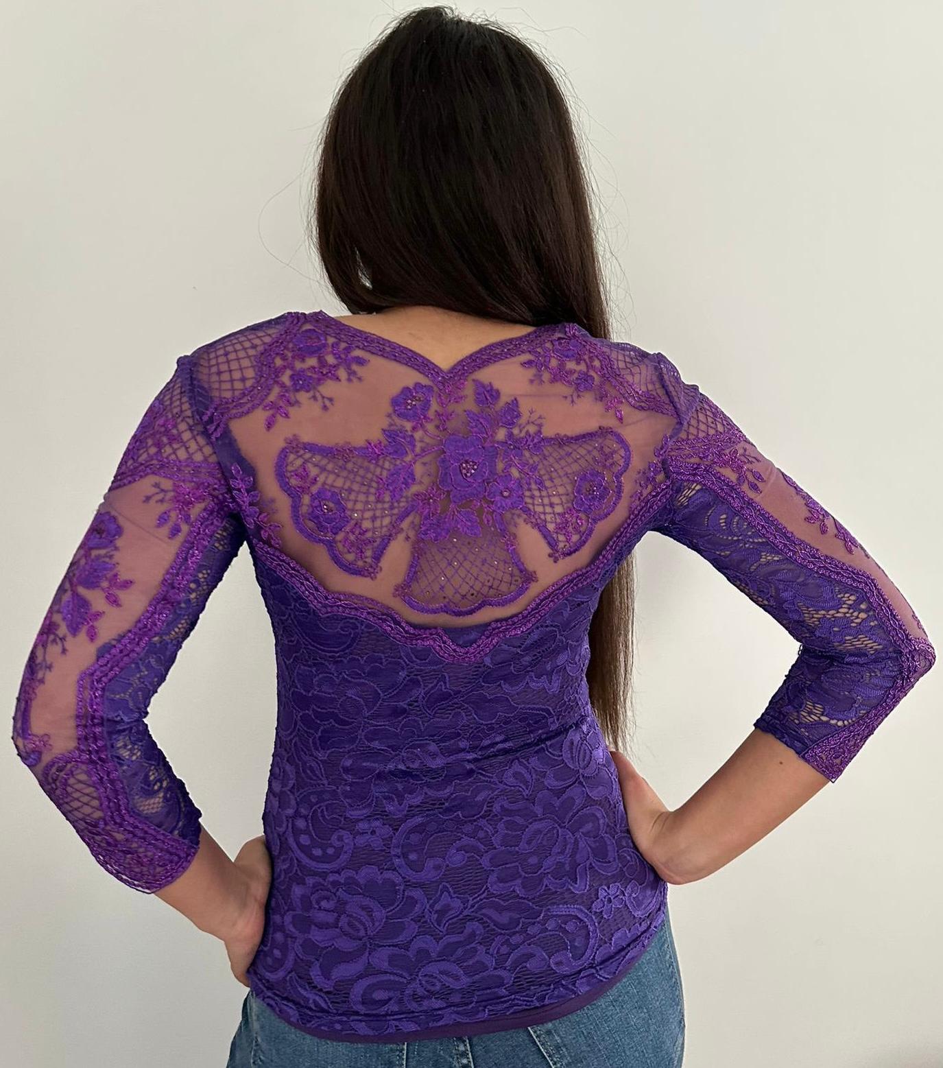 Osez la couleur avec cette pièce forte de la nouvelle collection 2026. Ce body violet électrique est une véritable déclaration de style, conçu pour la femme Eden Rose qui souhaite allier charisme et ultra-féminité. Une nuance captivante qui apporte une énergie nouvelle à votre vestiaire de saison. Dentelle Florale de Caractère : Un motif floral dense et richement brodé qui structure la silhouette avec élégance. Jeux de Mailles et Transparences : Le haut du buste et les manches 3/4 dévoilent un motif en résille géométrique entrelacé de broderies, créant un contraste visuel moderne et sensuel. Décolleté Festonné : Une encolure en V délicatement travaillée avec des bords festonnés qui soulignent le port de tête. Confort Absolu : Réalisé dans une maille technique douce et extensible, ce body garantit un ajustement parfait et une liberté de mouvement totale.